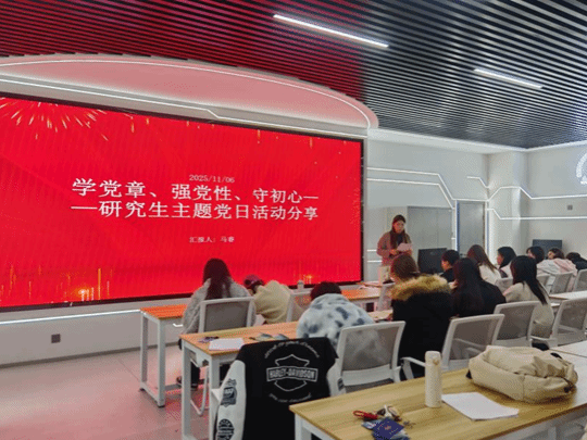 马睿围绕“学党章、强党性、守初心”主题,与大家分享研究生党员的责任担当。党章作为党的总章程和根本行为规范,明确了新时代青年“有理想、敢担当、能吃苦、肯奋斗”的使命要求;强党性需坚定政治立场、恪守党员本色,可通过深化理论学习、强化自我约束锤炼过硬品格;守初心要以党章为行动指南,将理论融入科研实践,以知行合一践行新时代青年的责任担当。