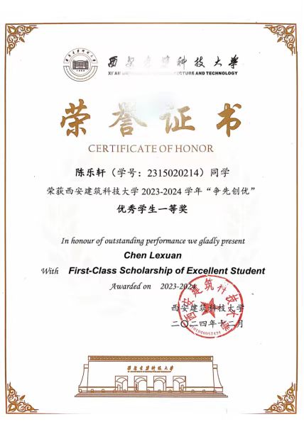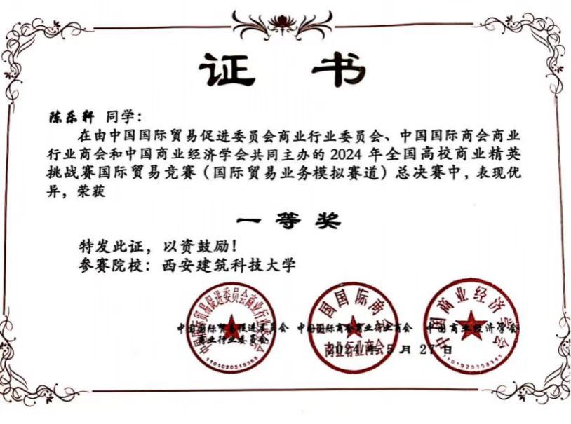 陈乐轩,女,汉族,共青团员。现任Ray竞技官网国贸2301班学习委员,“十佳社团”第二相声社实践交流部副部长。专业平均学分绩点年级第一(4.28/5.00),创新创业竞赛荣获国家级奖项4项,参与省级大创项目1项。荣获2024年全国商业精英挑战赛文旅与会展创新创业实践竞赛国家一等奖;2024年全国高校商业精英挑战赛国际贸易竞赛国际贸易业务模拟赛道国家级一等奖;2024大学生新文科实践创新大赛国家银奖;知翰杯全国大学生现代企业数字化运营实践与创新挑战赛国家二等奖。荣获2023-2024学年“争先创优”优秀学生一等奖,深圳校友“鹏飞”奖学金。荣获2024年度五四表彰“优秀共青团员”和“优秀青年志愿者”荣誉称号。