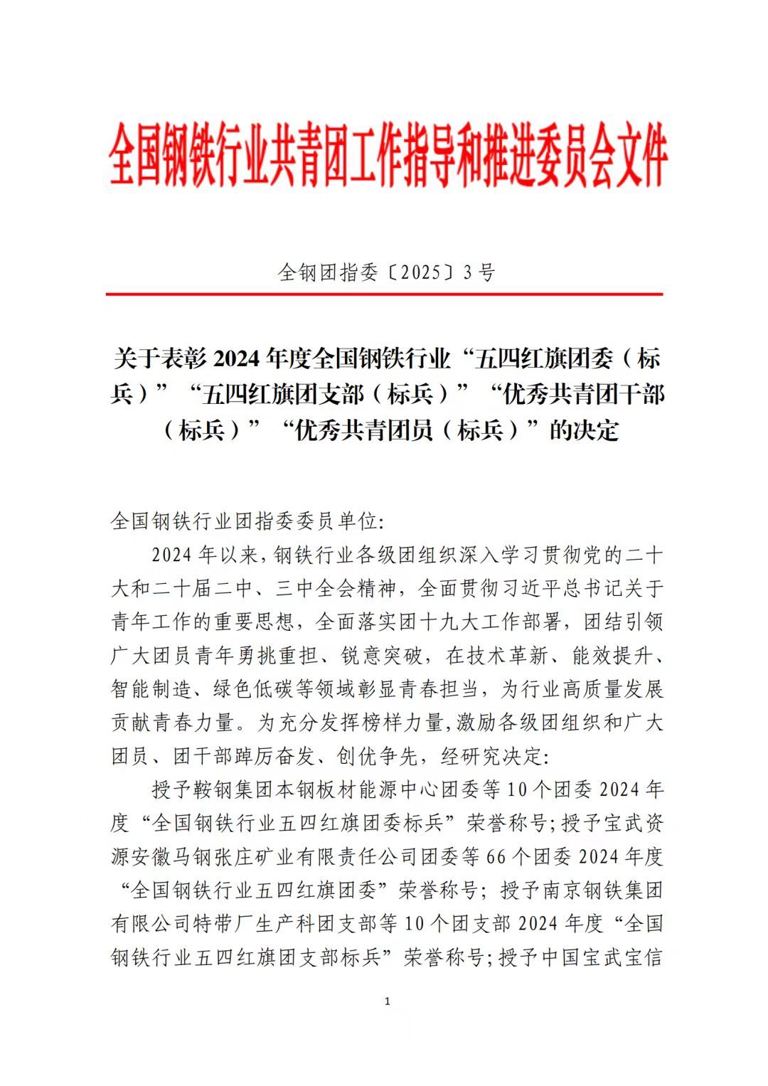 近日,全国钢铁行业共青团工作指导和推进委员会下发了关于表彰2024年度全国钢铁行业“五四红旗团委(标兵)”“五四红旗团支部(标兵)”“优秀共青团干部(标兵)”“优秀共青团员(标兵)”的决定,我院国贸2301班陈乐轩同学被授予2024年度全国钢铁行业“优秀共青团员”荣誉称号。