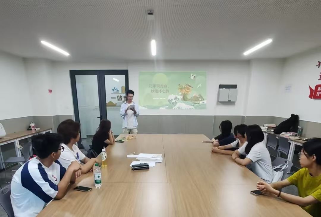 随后,王奇同学向我们介绍了端午节的文化精髓:“龙舟精神”包含了团结协作的力量和拼搏进取的品质,端午节吃粽子的传统习俗象征着家庭团圆与思念牵挂的情感寄托,艾草文化则体现着健康养生的智慧以及祈福安康的美好愿景。在“巧手筑龙舟”的活动环节中,参与者共同合作制作迷你龙舟,深入了解龙舟的精巧结构及其承载的文化内涵,并将制作完成的迷你龙舟进行展览。随后的心灵对话环节中,大家围绕团队协作的感悟和端午祝福展开深度交流。这一过程增进了彼此的情感联结,提升了情感表达能力,促进了心灵的共同成长。
