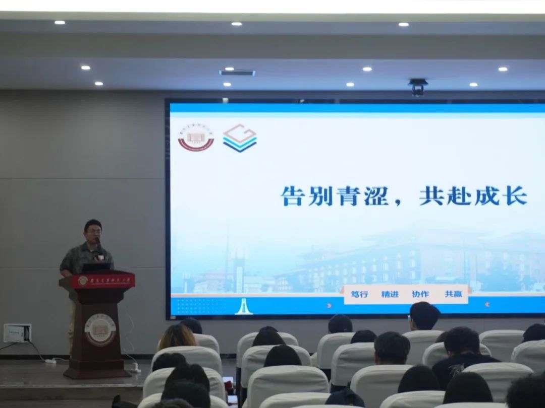 强靖淇首先回顾并总结了过去一学年的整体学习生活情况。他结合往届优秀案例和就业数据,鼓励同学们坚定发展信心。他引导大家着眼长远,强调尽早进行学业与职业规划的重要性,说明无论是选择继续深造还是直接就业,都需要提前了解路径、明确目标方向,并在后续学习中持续积累相关能力,提升核心竞争力。