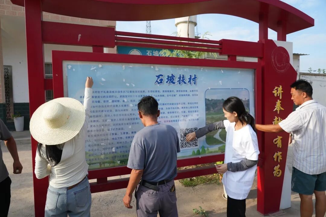 在绘制墙画之余,实践团去村委会采访了石坡扶村的村长和村委会书记。了解到当地的特产有苹果、桃、梨等水果。村民的主要收入是售卖苹果、桃、梨等水果。实践团了解到村里只有老人常住,缺乏网络销售渠道。在队员的帮助下,创建了石坡扶村公众号等网络平台。在售卖新鲜水果之外还可以创立水果加工厂,将不易保存或者多余存货加工成可以长期保存的食品,比如苹果罐头、苹果干等。还贴上了团队为村里制作的海报。