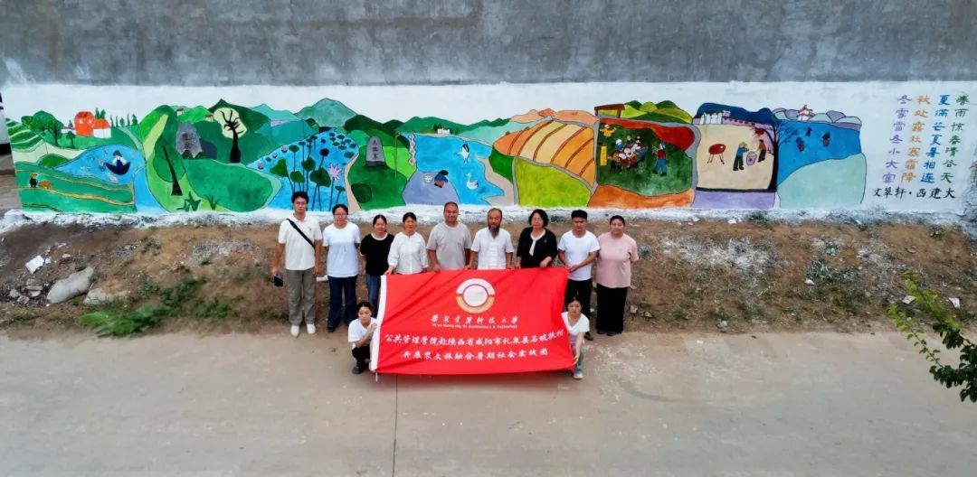 在文化强国建设的背景下,乡村文化建设是推动农文旅融合,实现乡村振兴的一条重要路径。为深入践行乡村文化振兴战略,助力乡村文化发展,Ray竞技官网于2025年8月22日赴陕西省咸阳市礼泉县石坡扶村开展为期两天的农文旅融合实践活动。建大学子以青春之笔,用艺术点靓乡村,与文翠轩共同创作了总面积逾100平方米的墙绘作品。