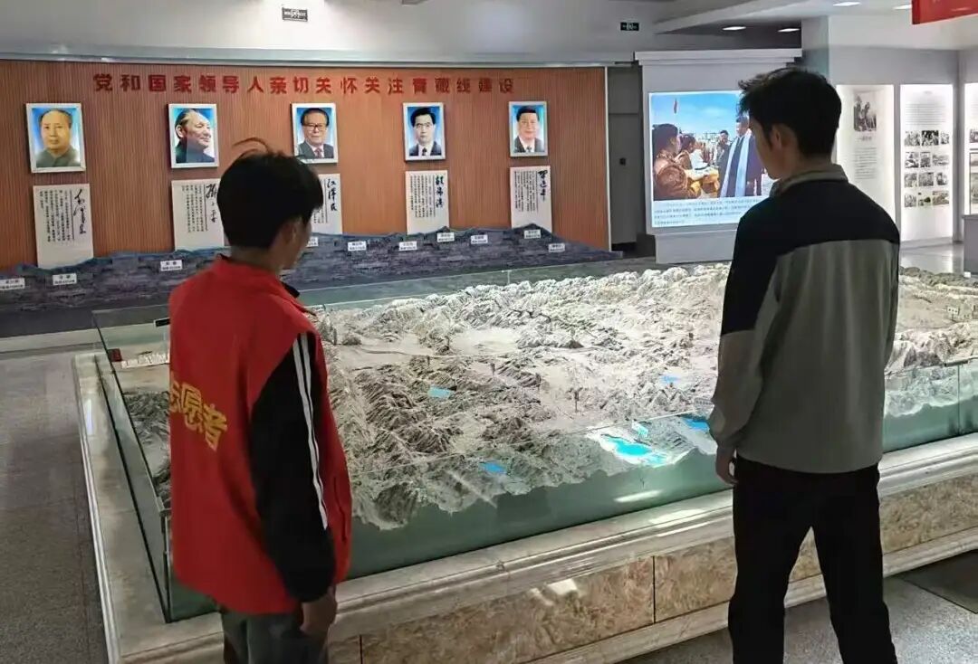 成员们参观了紧邻将军楼公园的青藏公路纪念馆,这是对那段筑路历史更为详尽的呈现。馆内的每一张照片、每一件实物,都诉说着筑路英雄们的故事。从艰难的选址规划,到开山架桥的艰辛……都被一一记录。这里不仅是对历史的缅怀,更是对“两路”精神的传承。