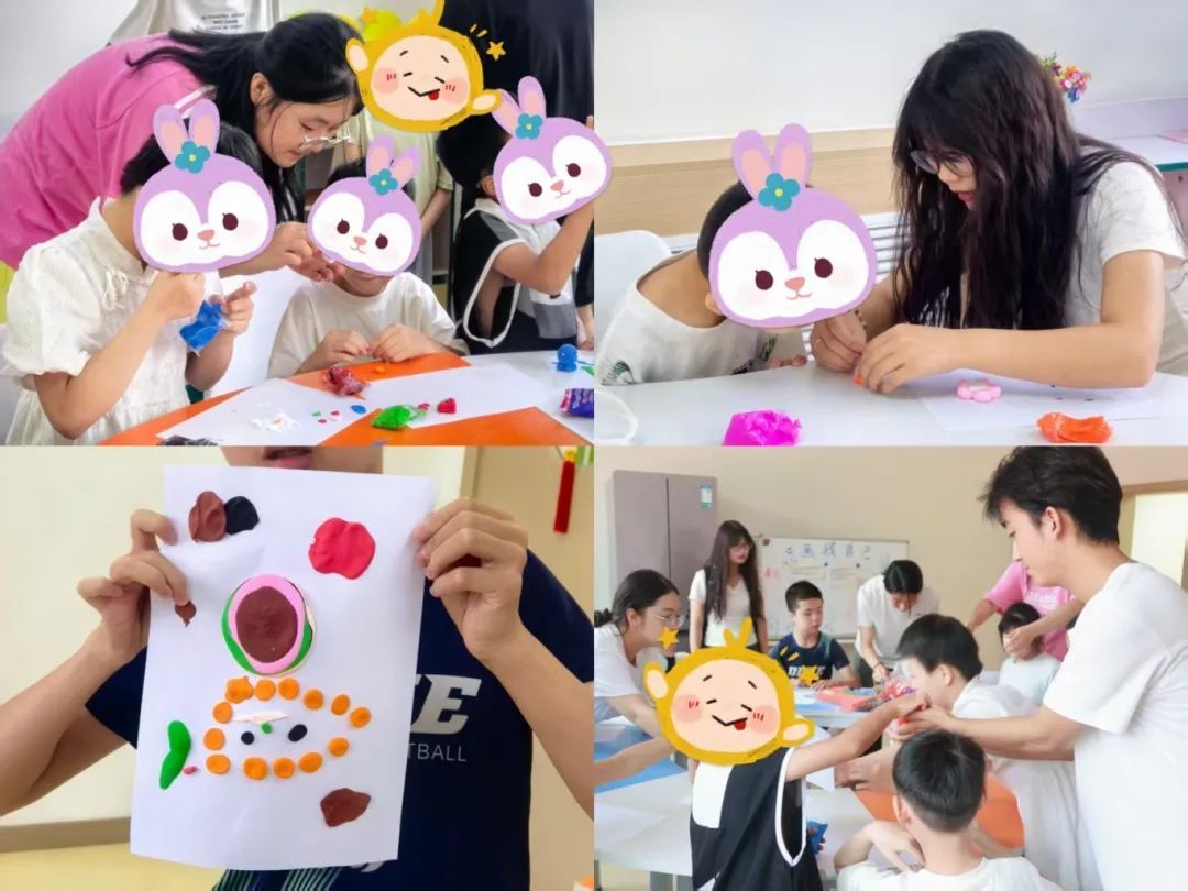 “奇思妙想” 手工课成为本次活动的 “温情亮点”。队员们引导儿童通过彩纸裁剪与橡皮泥塑形,将奇思妙想转化为立体作品,让孩子们在创作中提升动手能力与表达能力。实践队员们和孩子们一对一交流,暖心陪伴间悉心倾听孩子们真实心声,精准掌握孩子需求,为后续长期服务积累 “第一手素材”。