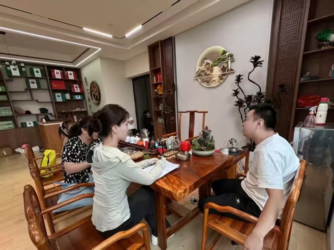 团队走进了当地知名茶企“七碗茶”,与企业负责人展开深入交流。其提到,企业作为连接生产与市场的纽带,在协同中发挥着重要作用。他们经常通过政府座谈会获取农业补贴、农产品价格等信息,并享受种植补贴、税收优惠等支持,但部分企业对“生态价值贷”等创新金融工具的操作流程尚不熟悉,期待政府能进一步简化流程、加强指导。他希望能有更规范的协作模式,让企业、合作社和茶农在协同中都能获得实实在在的收益,推动产业持续发展。
