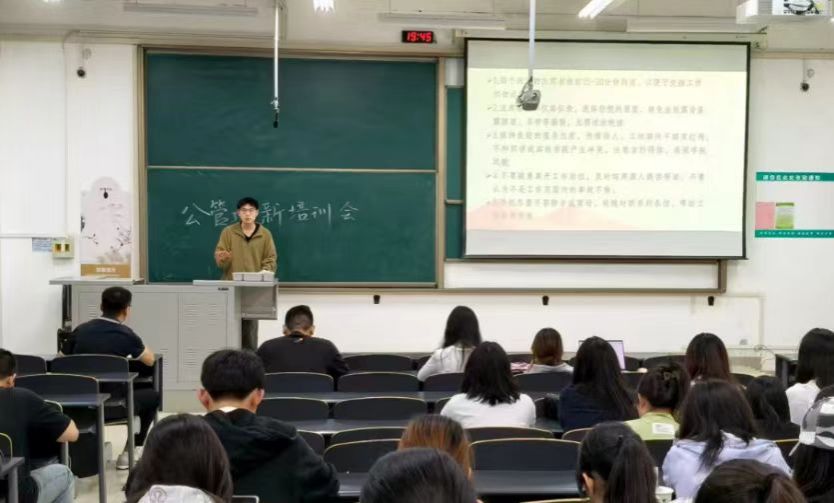 会议伊始,傅安可同学全面介绍了迎新流程。她结合往年经验,详细拆解了引导组、后勤组、登记组和机动组的主要任务及注意事项,并特别强调志愿者须提前到岗、准时值守,要以微笑和耐心传递学院温度。