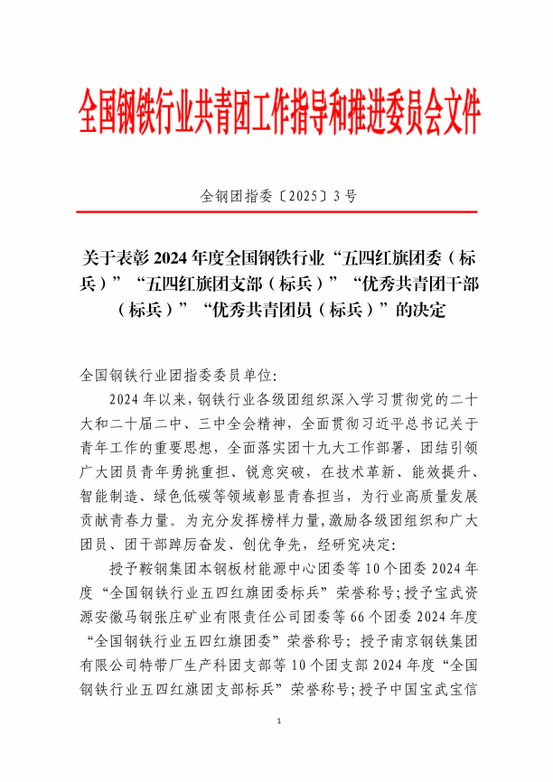近日,全国钢铁行业共青团工作指导和推进委员会下发了关于表彰2024年度全国钢铁行业“五四红旗团委(标兵)”“五四红旗团支部(标兵)”“优秀共青团干部(标兵)”“优秀共青团员(标兵)”的决定,我院国贸2301班陈乐轩同学被授予2024年度全国钢铁行业“优秀共青团员”荣誉称号。