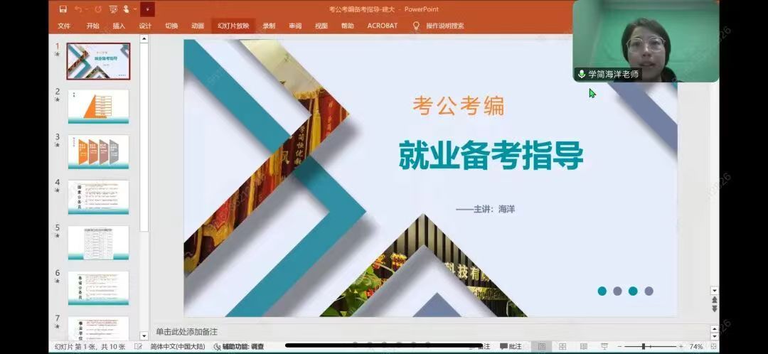 首先,学简教育海洋老师从考试类型、考试时间、招录流程、招录岗位、报考条件、考试内容六个方面出发,对大家进行了考公考编就业备考指导。她详细讲解了国家公务员考试、省公务员考试、事业单位考试及人才引进等类型考试的编制性质与稳定性,指出公务员与事业单位编制的区别,以及军队文职的特殊性,鼓励考生根据个人情况选择合适的考试,建议同学们早准备、选对岗、掌握方法,助力大家高质量就业。