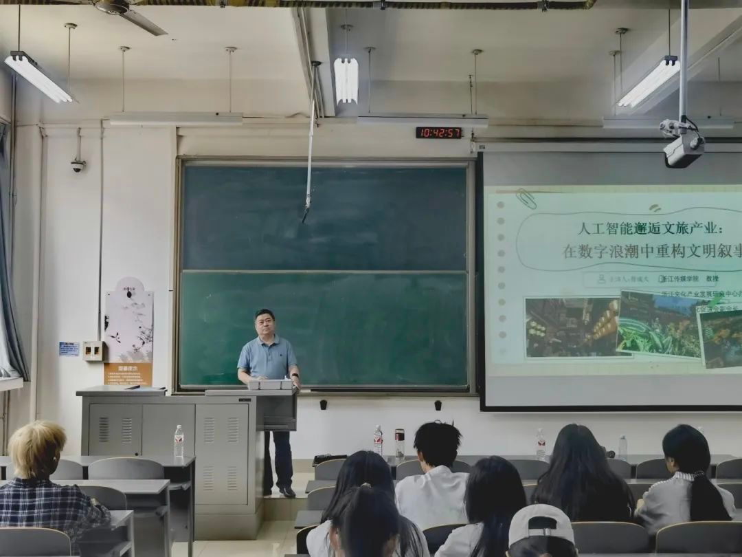 2025年5月18日上午九时,由我院主办的“文化强省建设”会议分论坛在学府城8-208教室成功举办。本次分论坛以“文管专业核心理论与实践热点”为主题,特邀上海交通大学中华文化传承研究院院长李康化教授、杭州师范大学文化创意与传媒学院院长范小春教授、浙江文化产业发展研究中心办公室主任詹成大教授担任主讲嘉宾。分论坛由我院院长、文化产业学科带头人詹绍文教授主持,吸引文管系师生逾百人参与,文管系支部书记赵尔奎、系主任刘妍珺以及黄欣、张臻、李敏、李天、雷杨等十余名教师出席。詹院长在开场致辞中系统阐述了我院文管专业“政产学研用”五位一体的培养特色,并重点介绍了专业在数字文创、文旅融合领域取得的突破性成果。