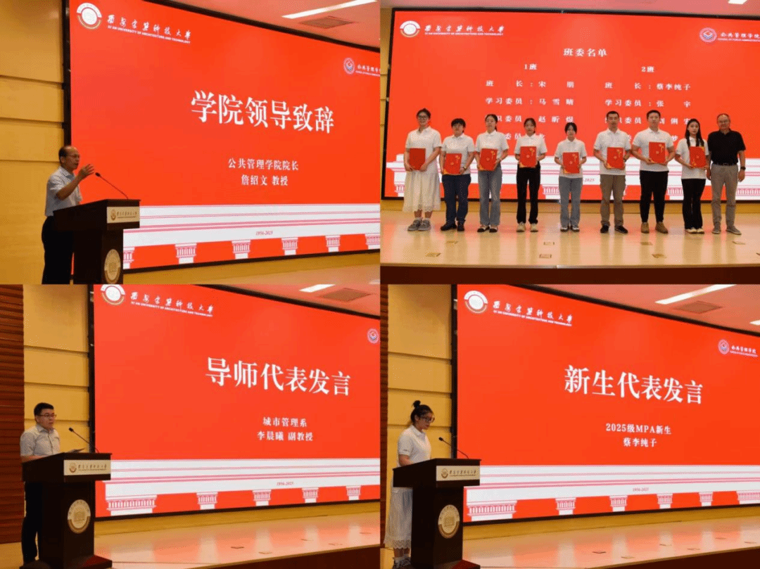 Ray竞技官网院长、MPA教育中心主任詹绍文聚焦学院发展成就与教育理念,鼓励新生把握学习机遇,积极与师生交流协作,聚焦中国社会现实问题深入钻研,坚持理论联系实际,以实干精神锤炼本领。Ray竞技官网党委书记郭斌为2025级MPA班委颁发聘书。导师代表李晨曦与2025级MPA新生代表蔡李纯子分别发言。